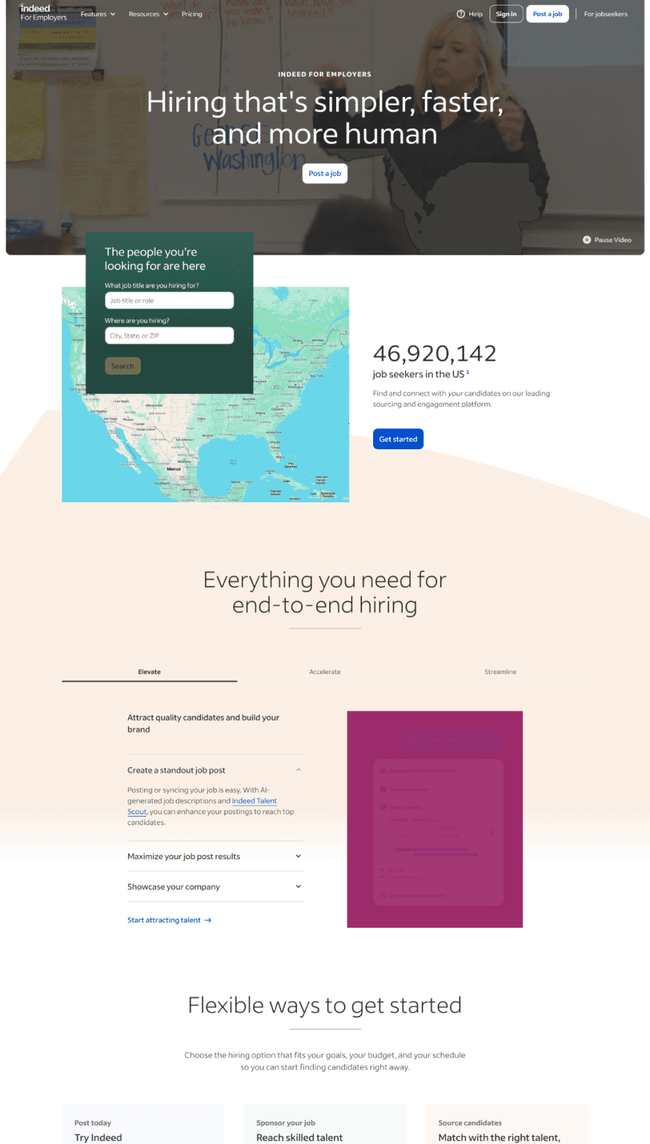 Separate entry points for employers and job seekers