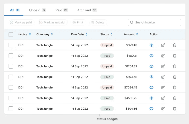 Use badges for status data.